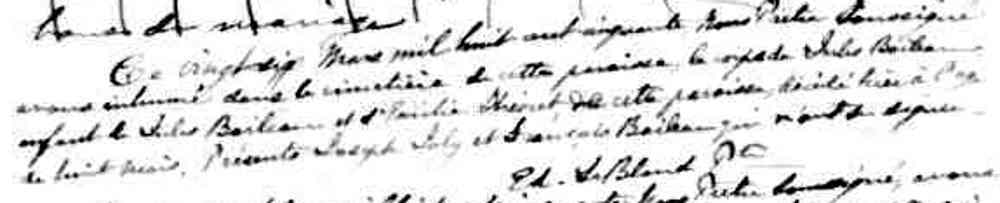 Sépulture de Jules Boileau à Saint Raphaël de l'île Bizard le 26 mars 1850