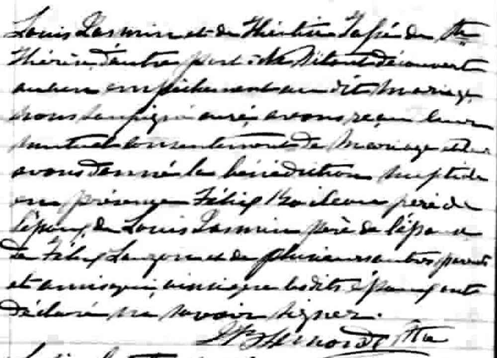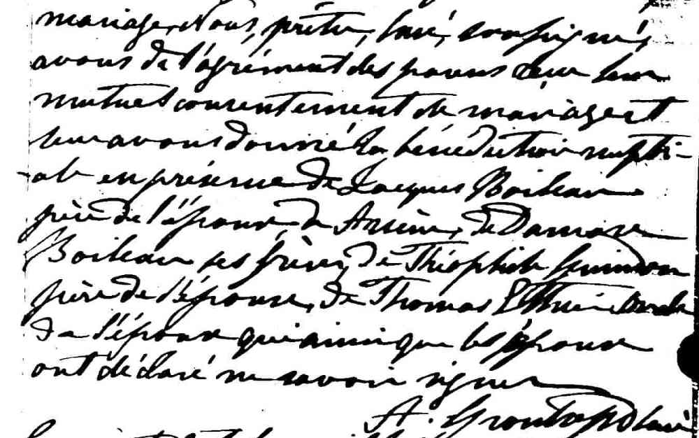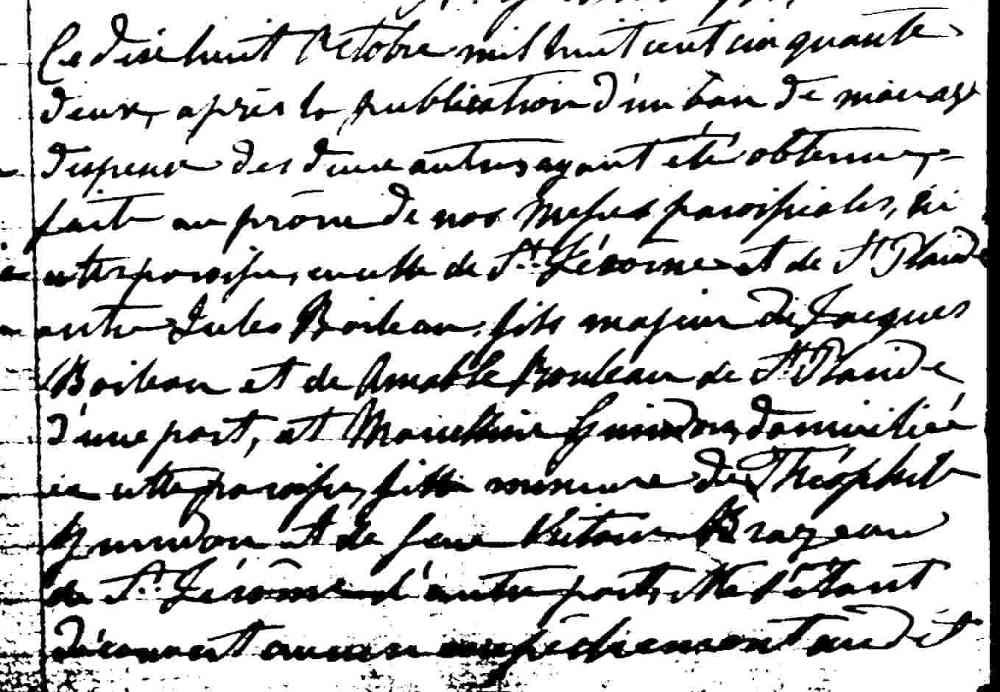 Mariage de Jules Boileau et Marcelline Guindon le 18 octobre 1852