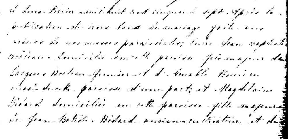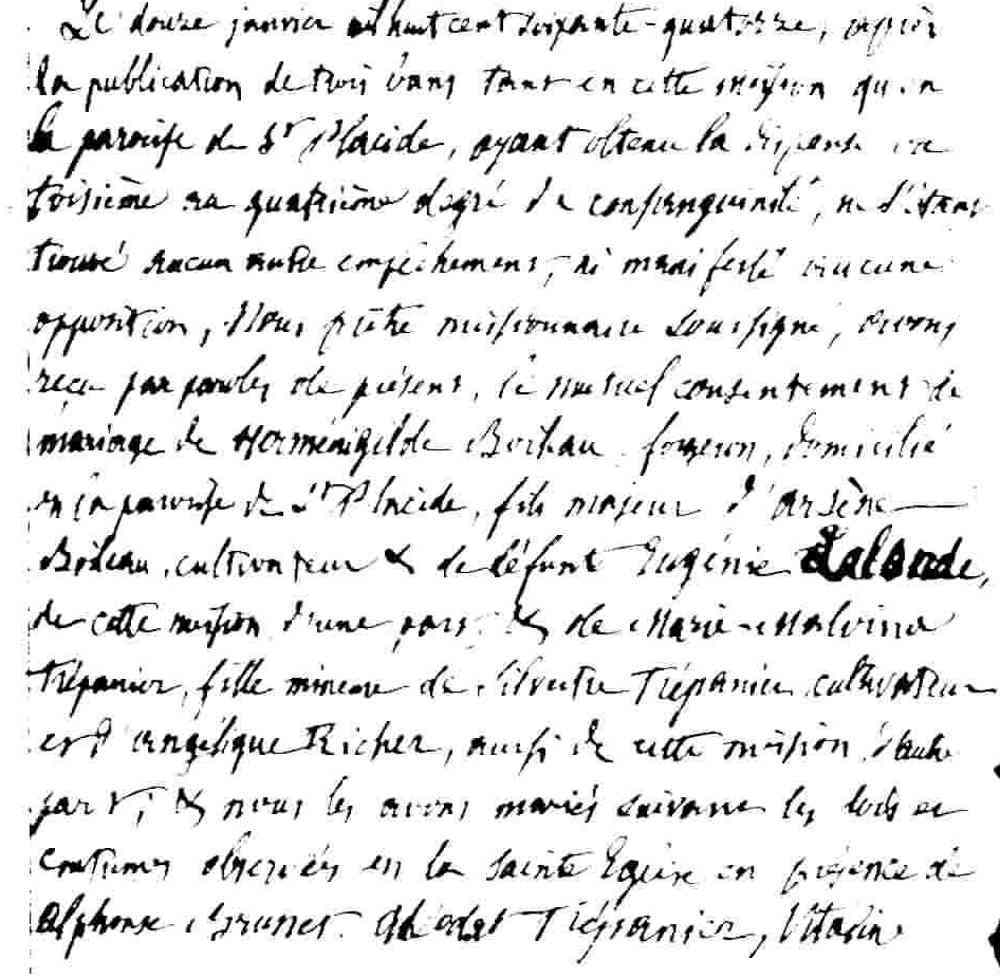 Mariage de Jean Baptiste Boileau et Marguerite Bédard à Saint Placide le 2 février 1857