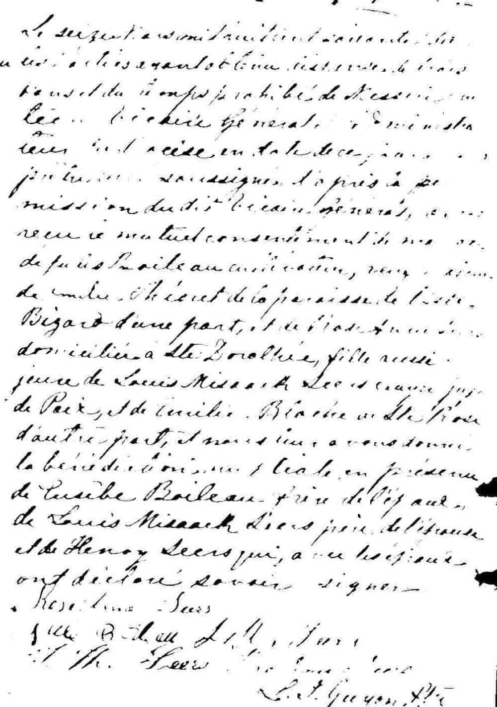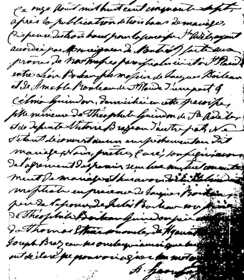 Mariage de Léon Boileau et Celina Guindon à Saint Benoît le 11 août 1857