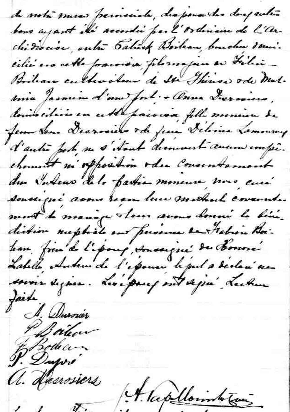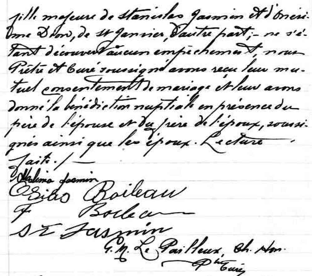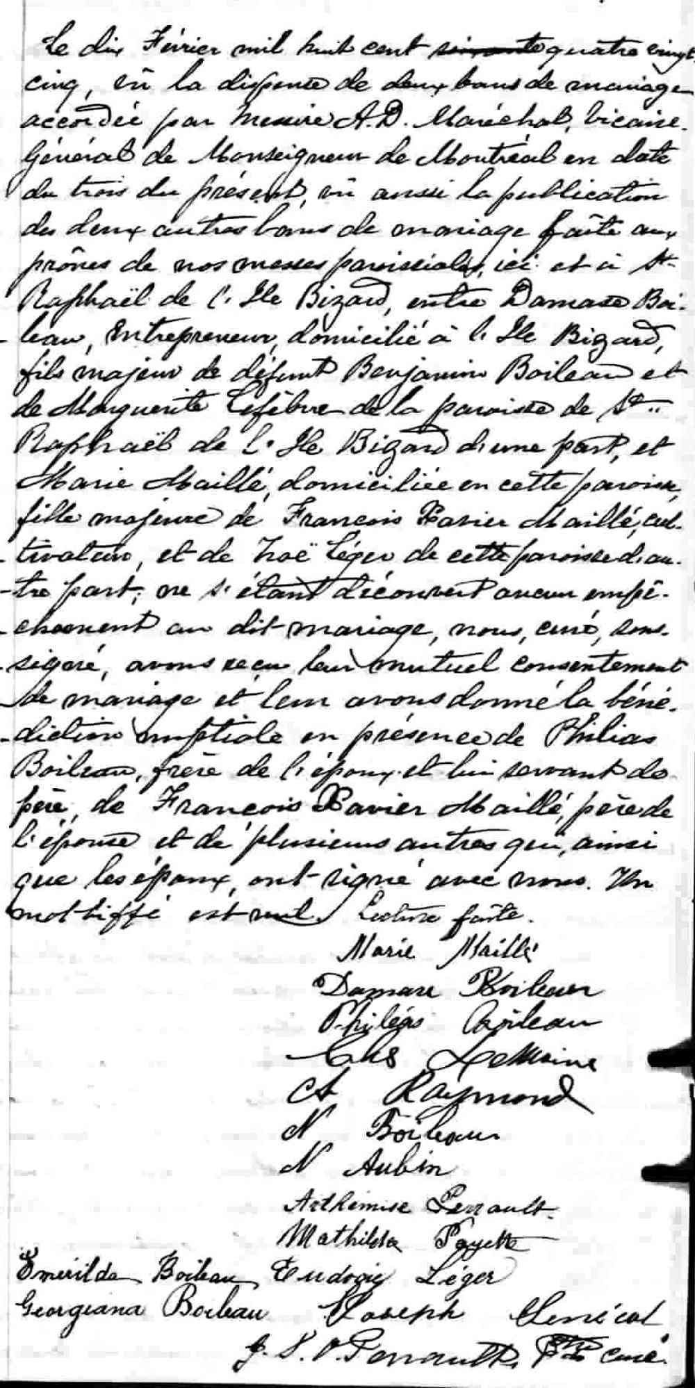 Mariage de Damase Boileau et Marie Maille à Saint Stanislas le 10 février 1885