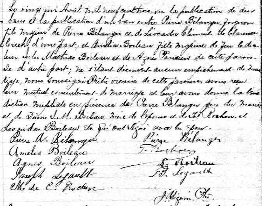 Mariage de Amelia Boileau et Pierre Belanger à Notre-Dame d'Ottawa le 21 avril 1903
