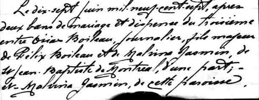 Mariage de Osias Boileau et Malvina Jasmin à Sainte-Thérèse de Montréal le 17 juin 1907