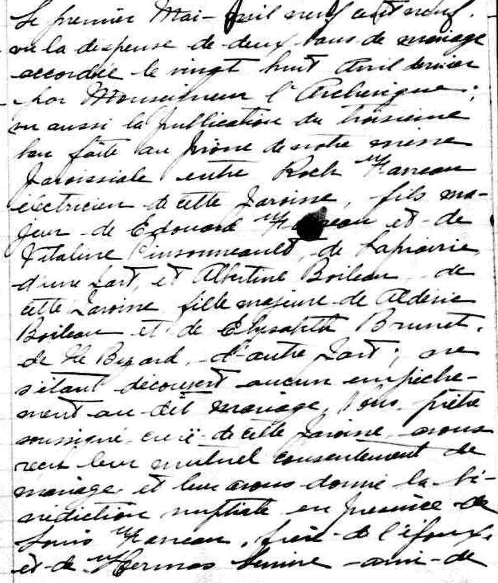 Mariage de Albertine Boileau et Roch Boileau à Sainte-Hélène de Montréal le 1er mai 1909