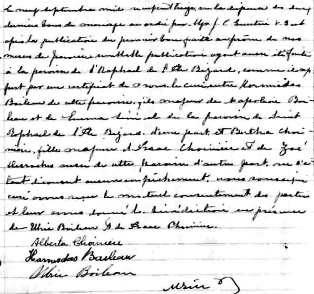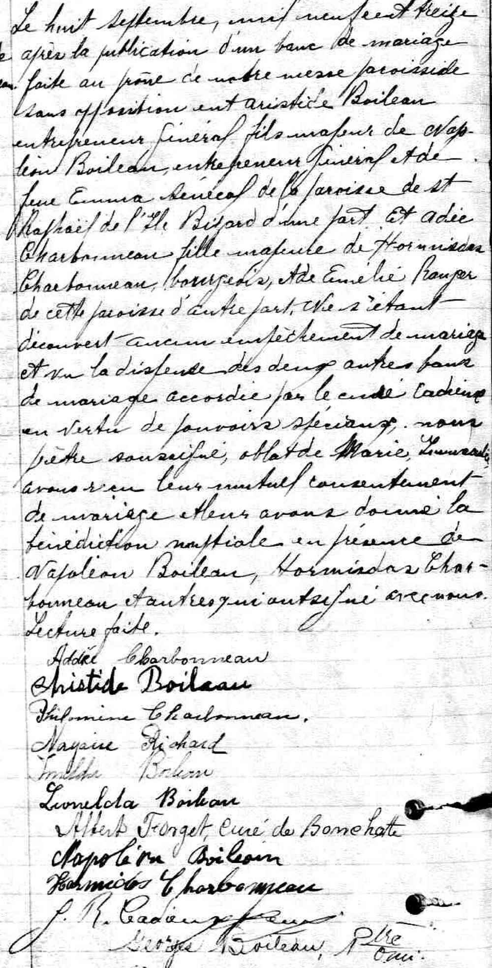 Mariage de Aristide Boileau et Adée Charbonneau à Saint-Raphaël de l'île Bizard le 8 septembre 1913