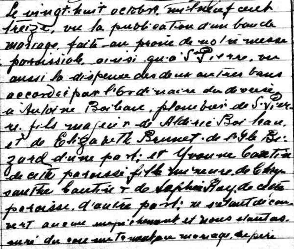 Mariage de Antoine Boileau et Yvonne Cantin à Sainte-Brigide de Montréal le 28 octobre 1913