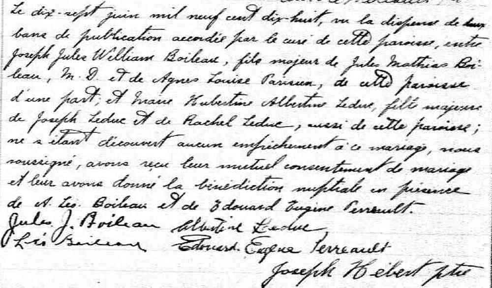 Mariage de Jules William Boileau et Albertine Leduc à Notre-Dame d'Ottawa le 17 juin 1918