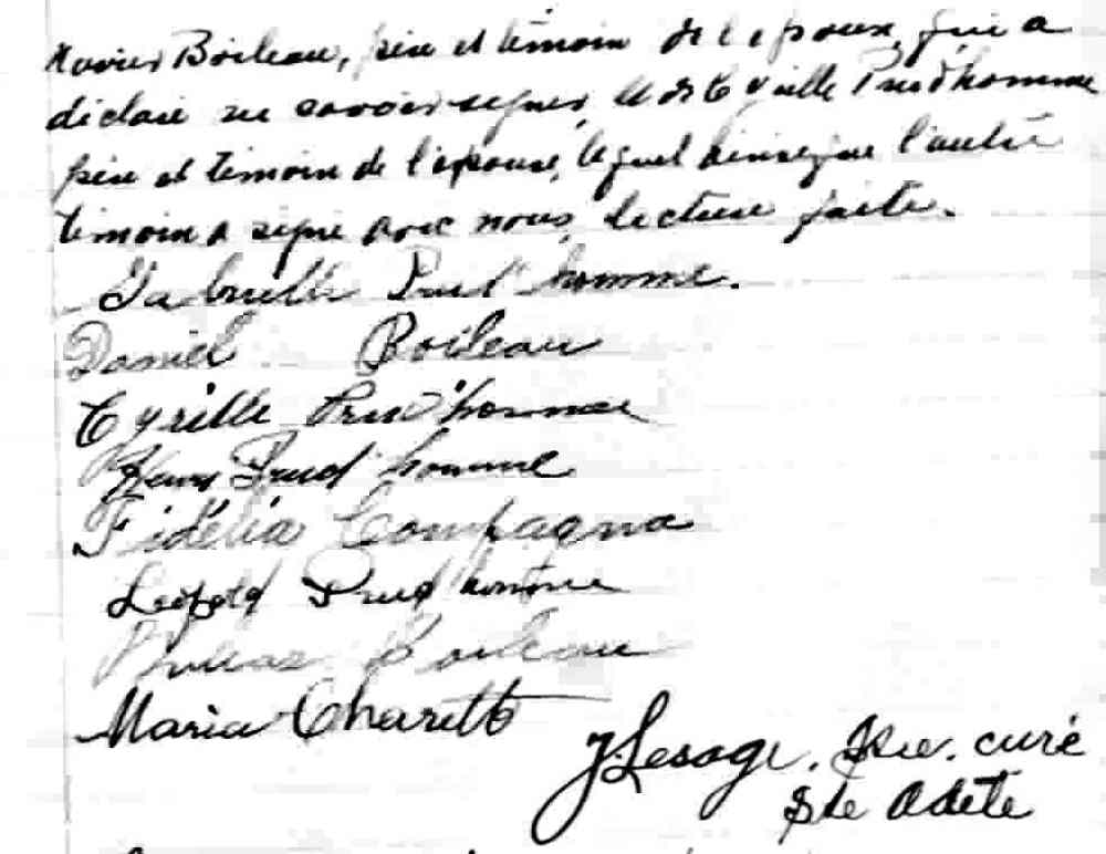 Mariage de Zephir Boileau et Angélina Bisaillon le 2 octobre 1923