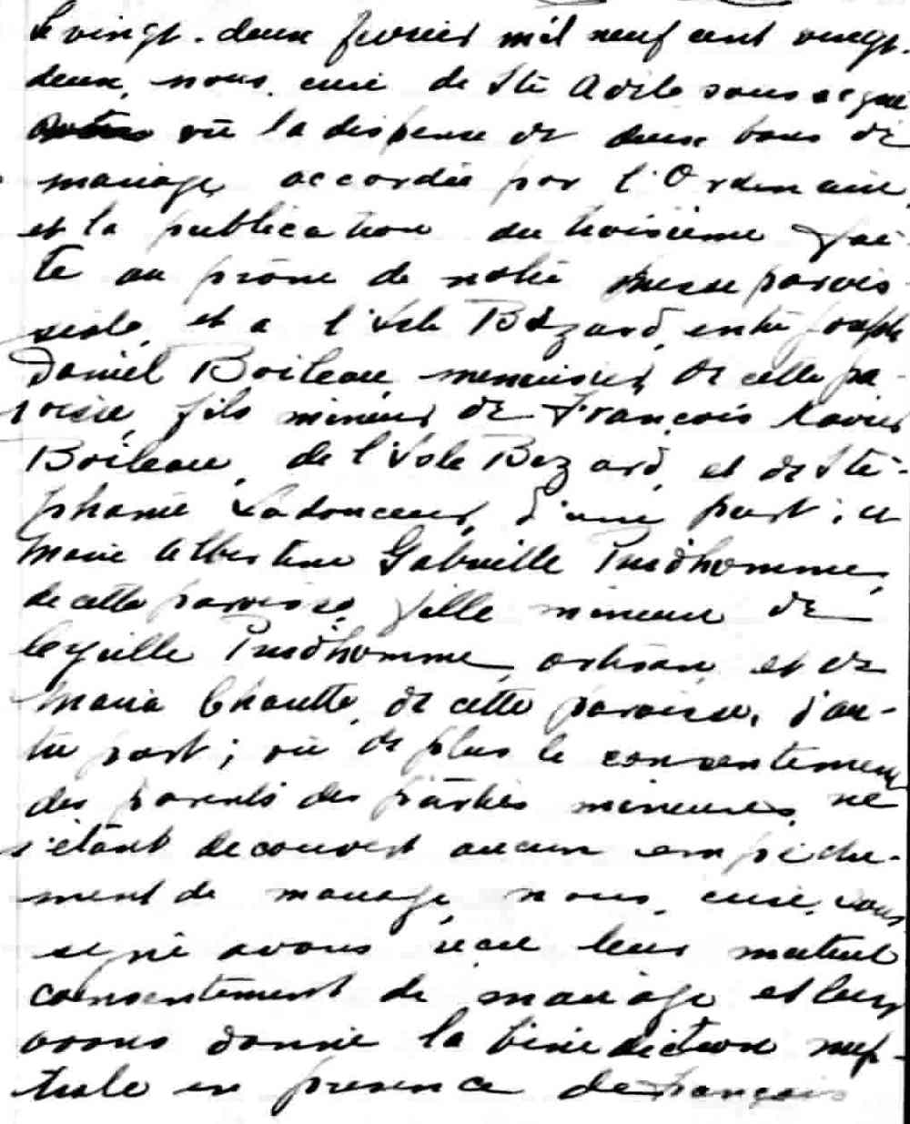 Mariage de Joseph Daniel Boileau et Albertine Gabrielle Prud'homme à Sainte-Marguerite le 22 février 1922