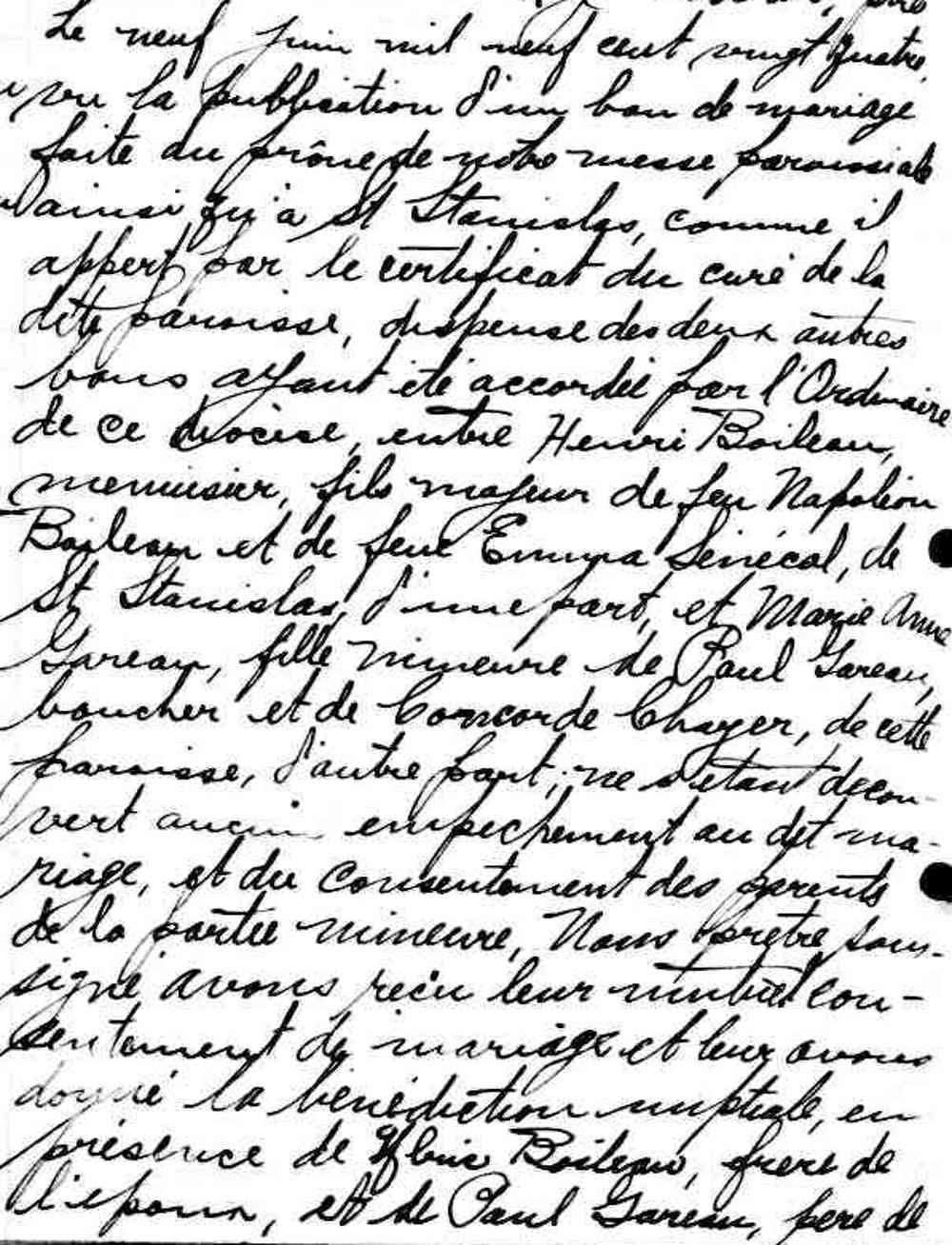 Mariage de Joseph Napoléon Henri Boileau et Marie Anne Gareau à Saint Arsène de Montréal le 9 juin 1924