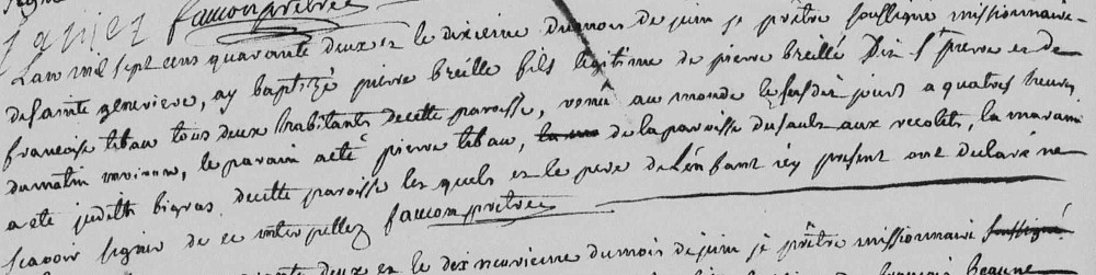 Baptême de Pierre Brayer Saint-Pierre à Sainte Geneviève le 10 juin 1742