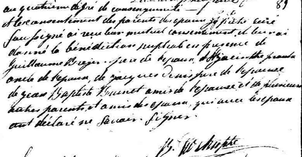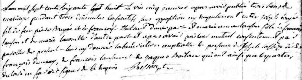 Mariage de Pierre Brayer Saint-Pierre et de Françoise Boileau à Sainte Geneviève le 16 août 1790