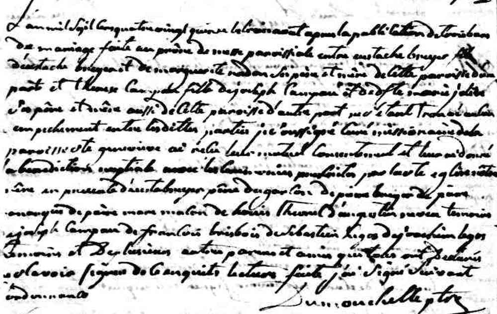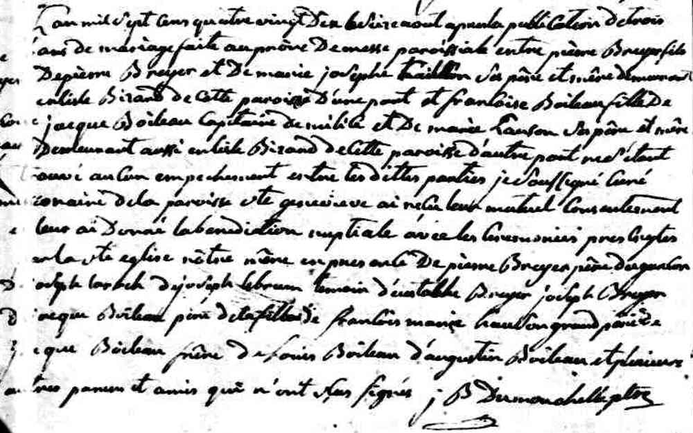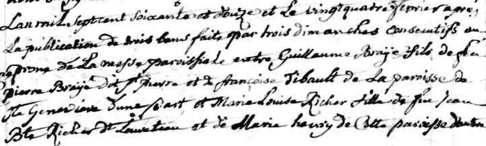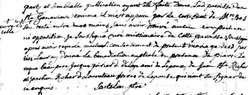 Mariage de Guillaume Brayer Saint-Pierre et de Marie Louise Richer à Pointe Claire le 24 février 1772