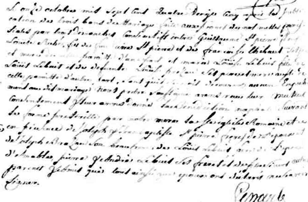 Mariage de Guillaume Brayer Saint-Pierre et de Marie Louise Lebuis à Saint Eustache le 11 octobre 1785