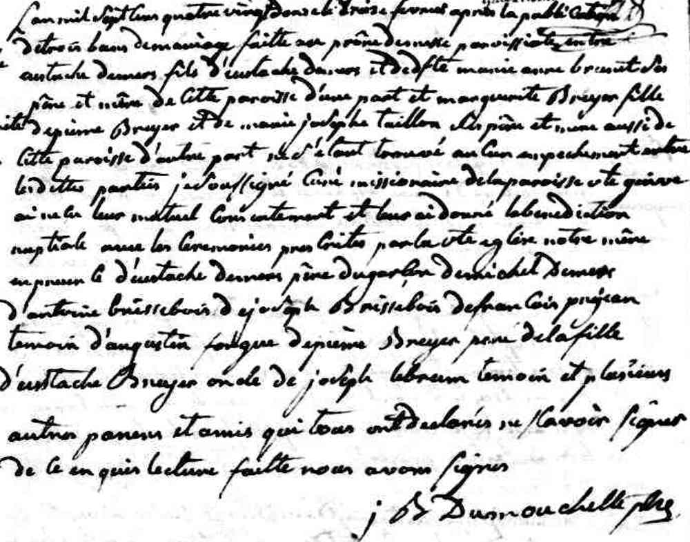 Mariage de Marie Marguerite Brayer Saint-Pierre et de Eustache Demers à Sainte Geneviève le 13 février 1792