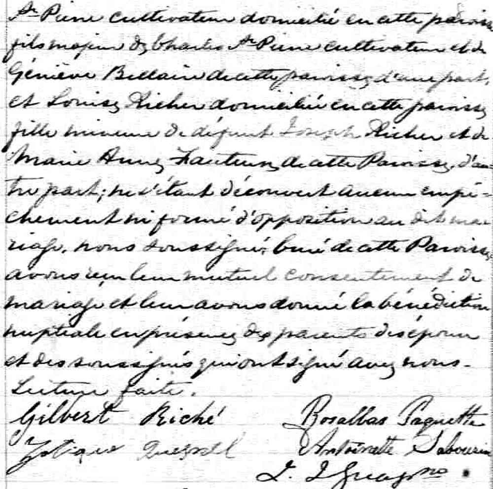 Mariage de Charles Saint-Pierre et Louise Richer à Saint Casimir de Ripon le 21 avril 1884