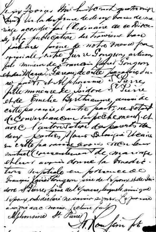 Mariage de Alphonsine Saint-Pierre et Pierre Gougeon à Saint Henri de Montréal le 6 février 1888