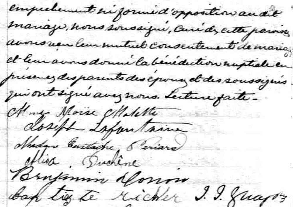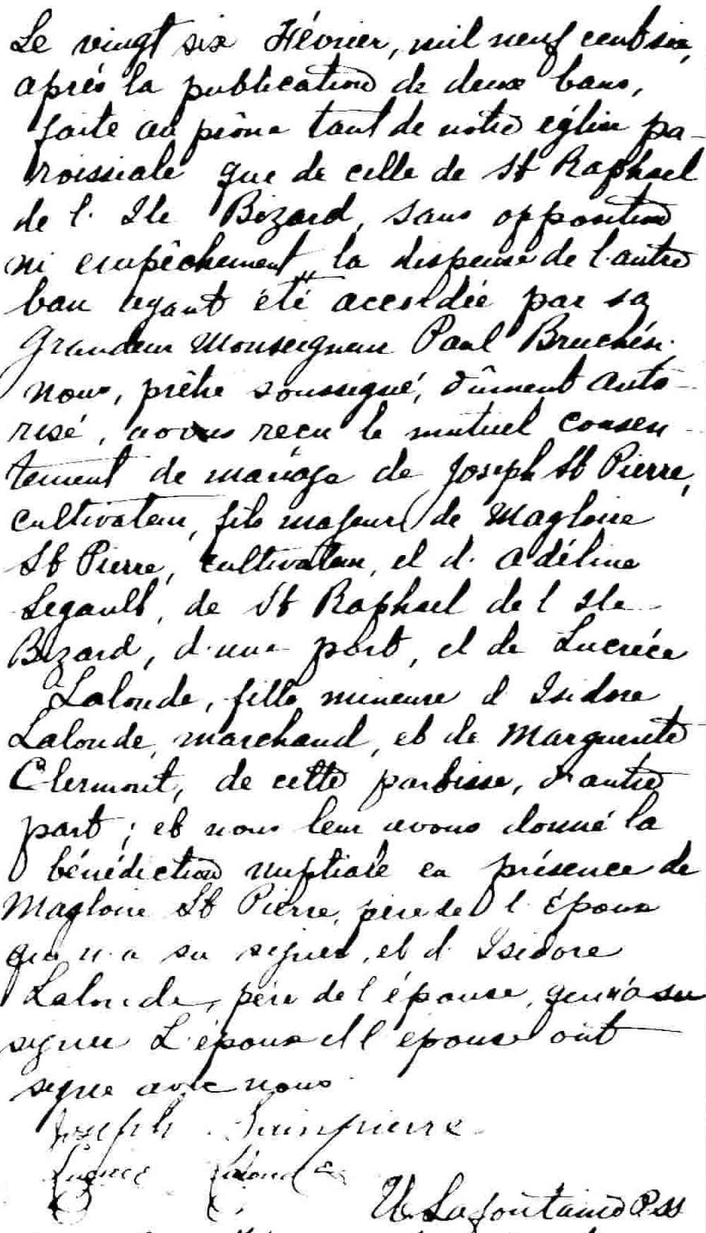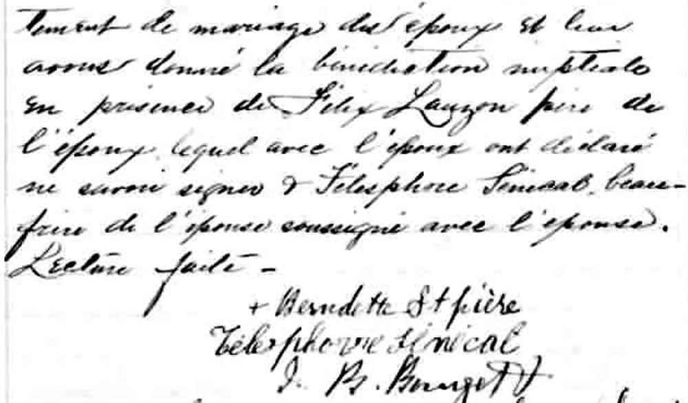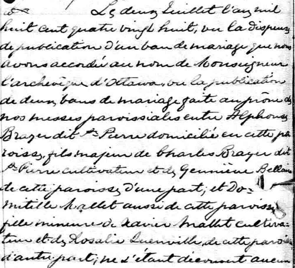 Mariage de Alphonse Saint-Pierre et Domitilde Malet à Saint Casimir de Ripon le 2 juillet 1888