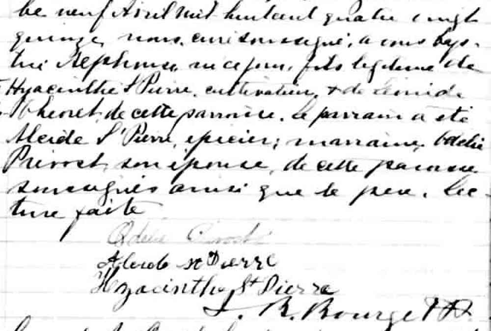 Baptême de Alphonse Saint-Pierre à Sainte Geneviève le 9 avril 1895