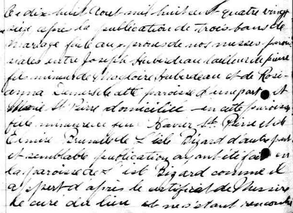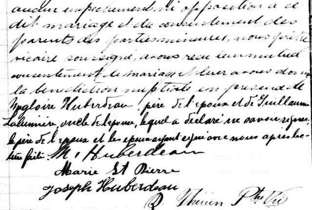 Mariage de Marie Marguerite Saint-Pierre et Joseph Huberdeau à Sainte Brigide de Montréal le 18 août 1896