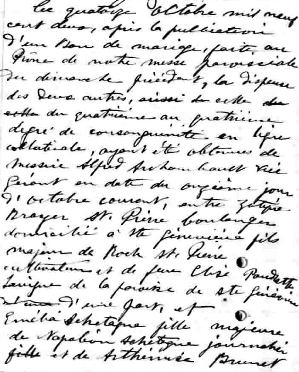 Mariage de Zotique Saint-Pierre et Émilia Shetagne à la Pointe Claire le 14 octobre 1902