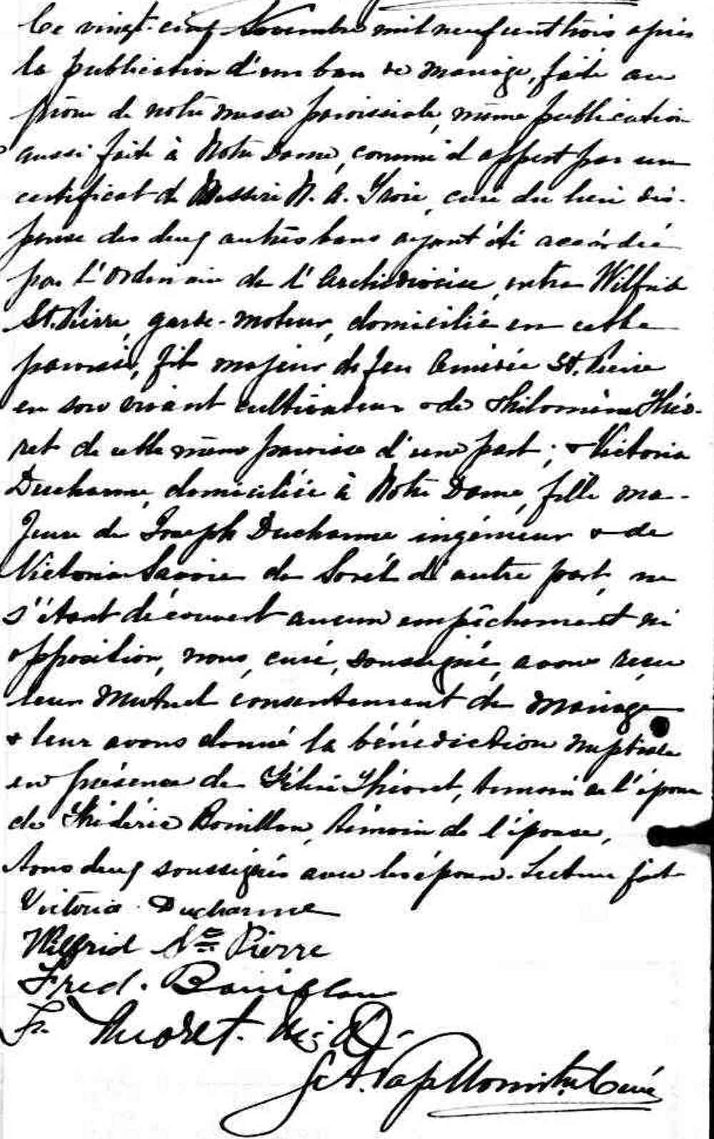 Mariage de Wilfrid Saint-Pierre et Victoria Ducharme à Saint Edouard de Montréal le 25 novembre 1903
