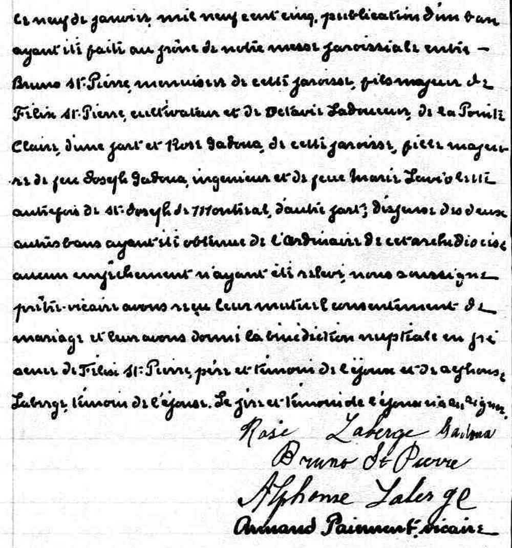 Mariage de Bruno Saint-Pierre et Rose Gadoua à Saint Jean Baptiste de Montréal le 9 janvier 1905