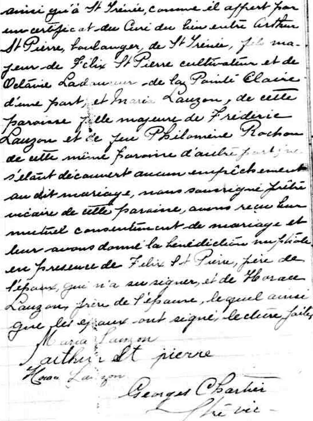 Mariage de Arthur Saint-Pierre et Maria Lauzon à Saint Joseph de Montréal le 22 octobre 1907