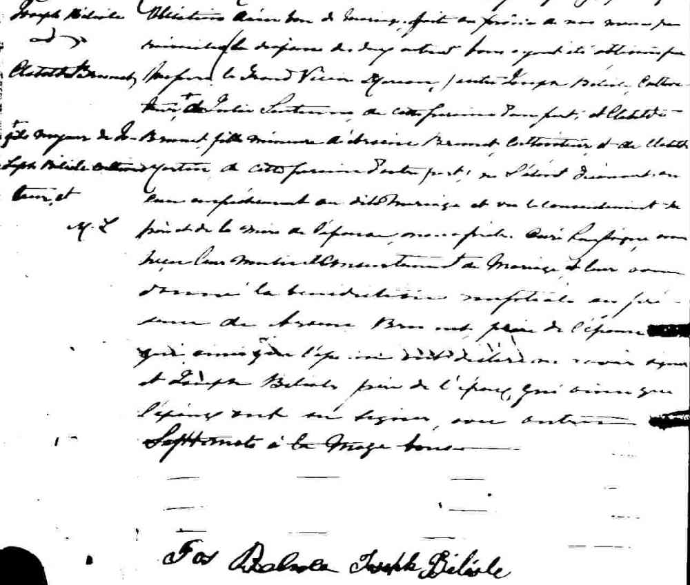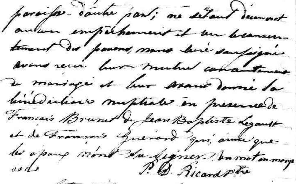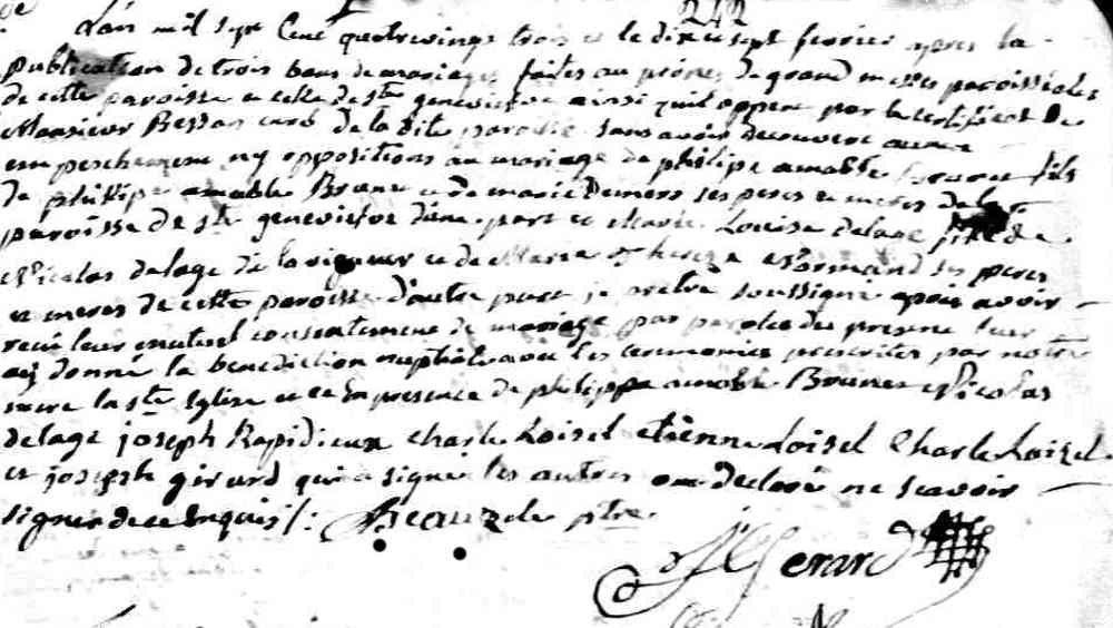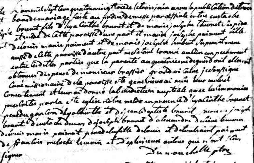 Mariage de Philippe Amable Brunet et Marie Louise Delage dit Lavigueur à Saint Laurent le 17 février 1783