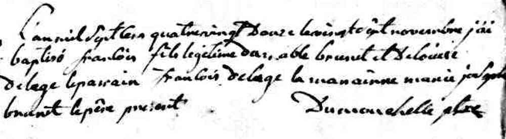 Baptême de François Brunet à Sainte Geneviève le 28 novembre 1792