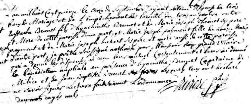 Mariage de Eustache Brunet et Marie Josephe Paiment à Sainte Geneviève le 11 septembre 1815