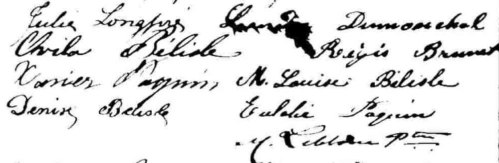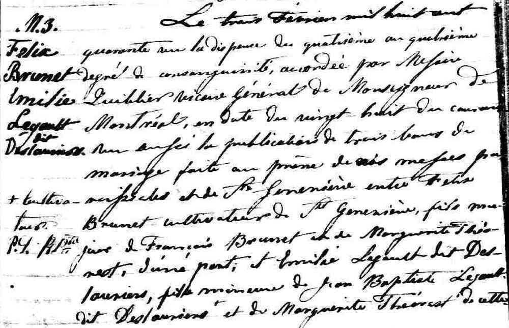 Mariage de Félix Brunet et Emilie Legault dit Deslauriers à la Pointe Claire le 3 février 1840