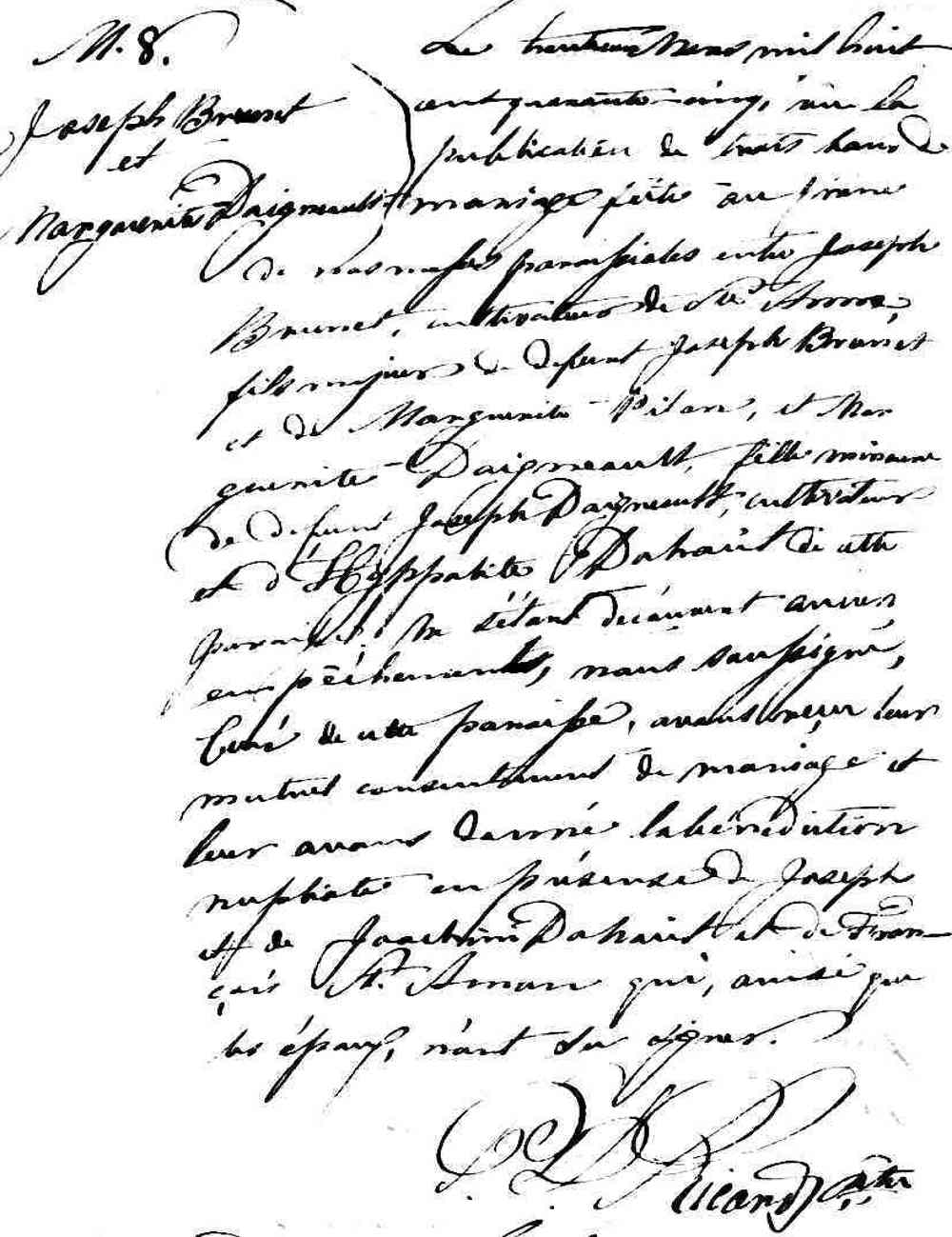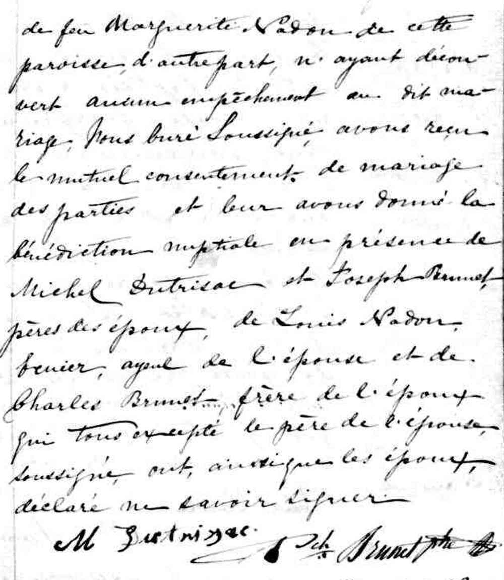Mariage de Joseph Brunet et Marguerite Daigneault à la Pointe Claire le 30 mars 1845