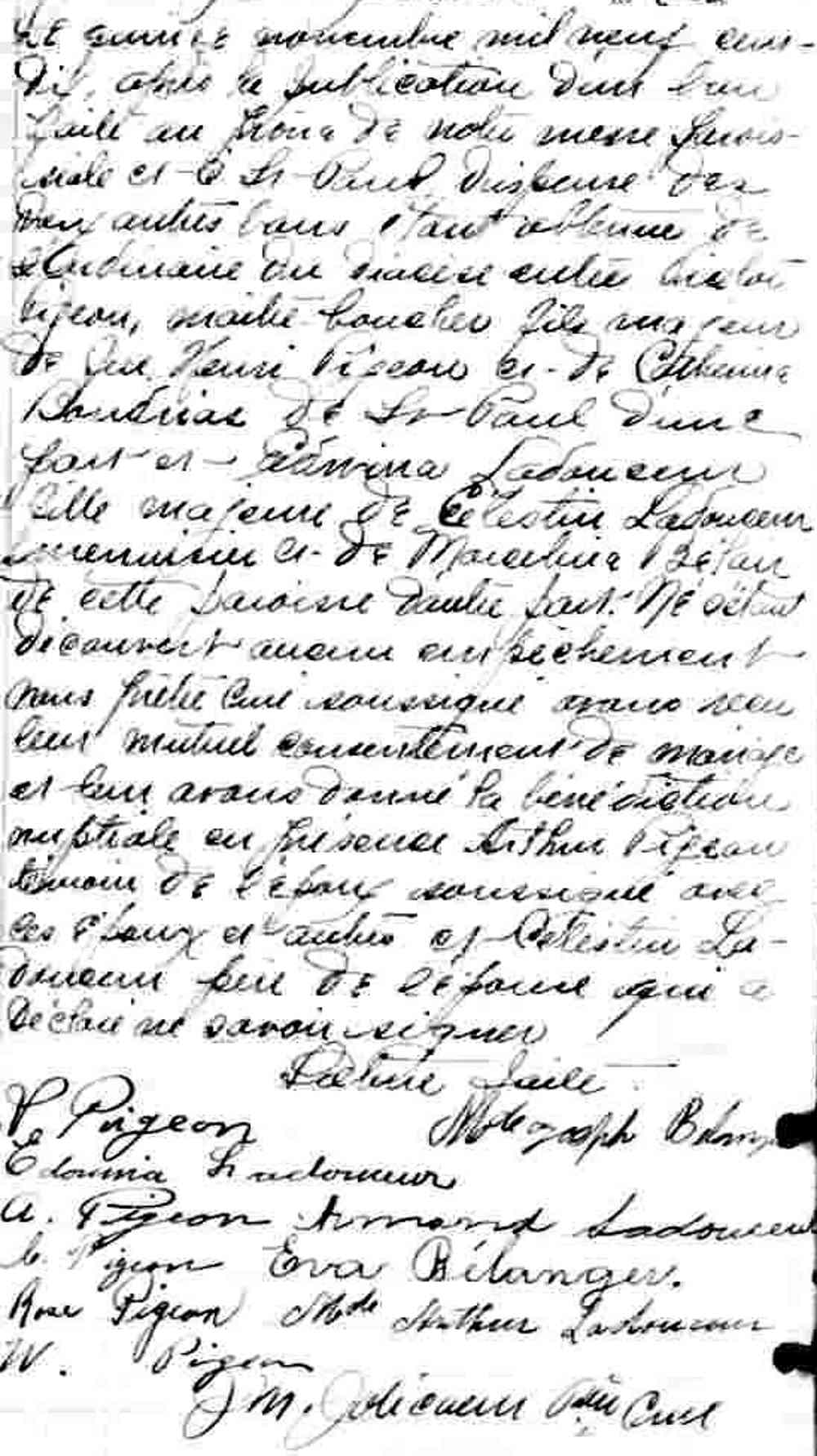 Mariage de Edwina Ladouceur et Victor Pigeon à Notre Dame de Montréal le 15 novembre 1910
