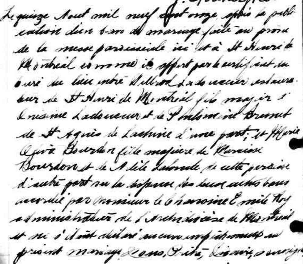 Mariage de Wilbrod Ladouceur et Marie Oliva Bourdon au Très Saint Nom de Jésus de Montréal le 15 août 1911