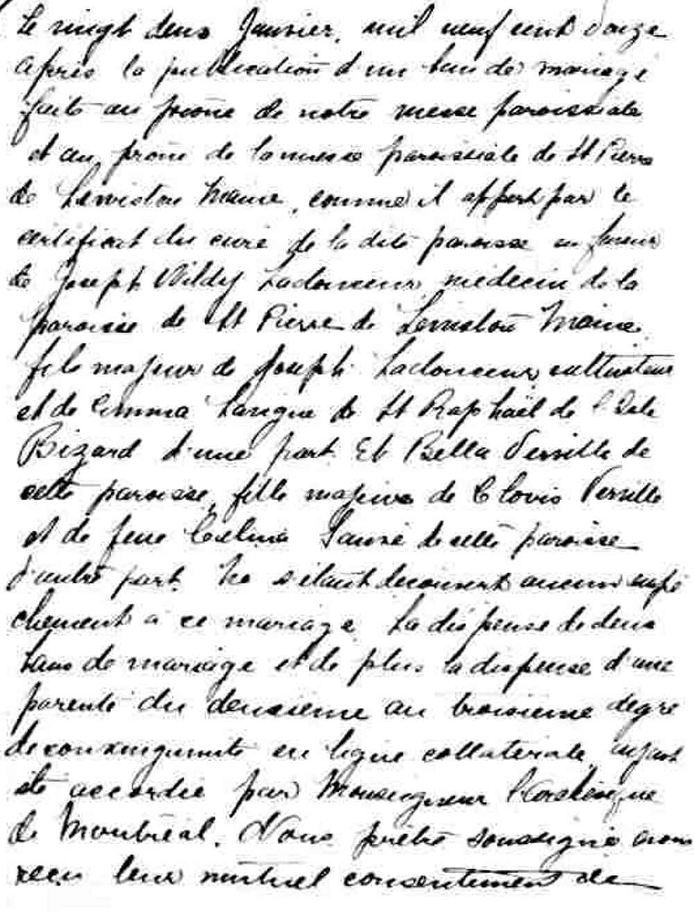 Mariage de Joseph Wildy Ladouceur et Bella Verville à la Nativité de la Bienheureuse Vierge Marie de Montréal le 23 janvier 1912