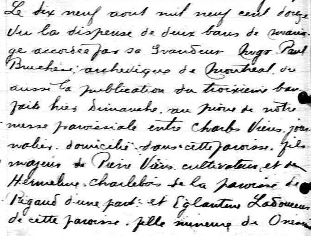 Mariage de Eglantine Ladouceur et Charles Viens aux Saints Anges Gardiens de Lachine le 19 août 1912
