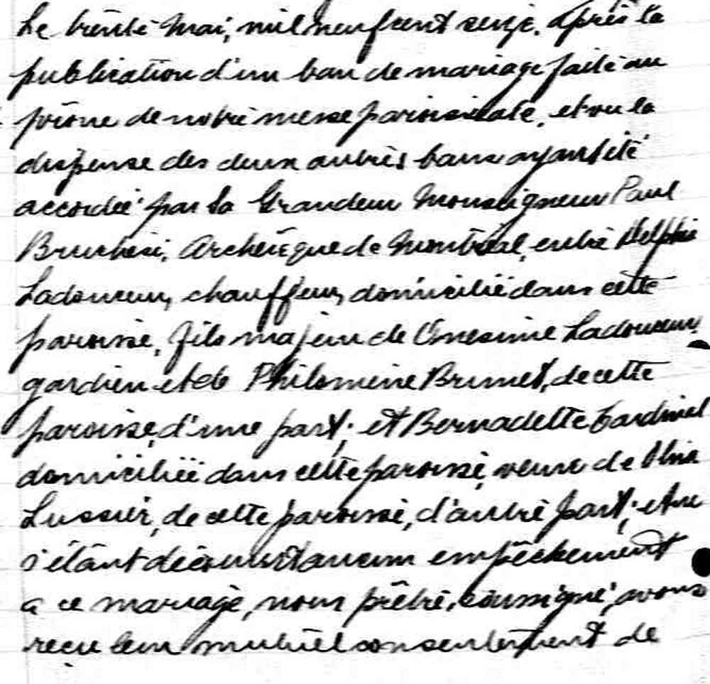 Mariage de Delphis Ladouceur et Bernadette Cardinal aux Saints Anges Gardiens de Lachine le 30 mai 1916