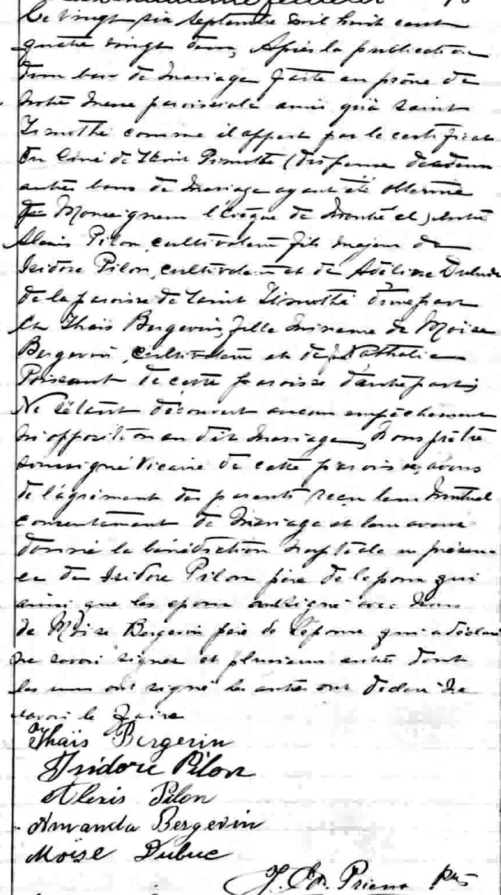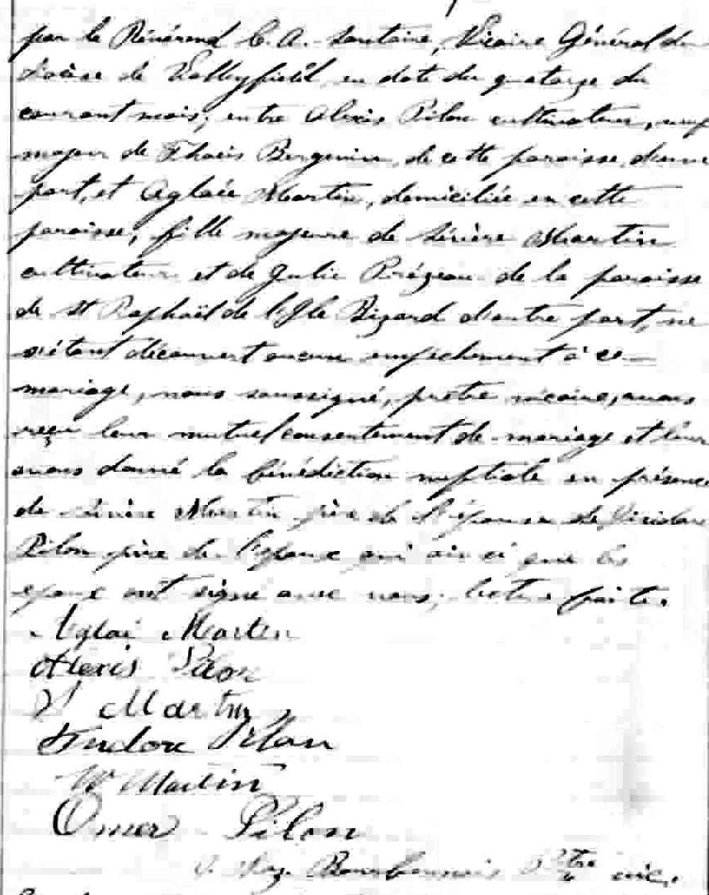 Mariage de Alexis Pilon et Thaïs Bergevin à Sainte Martine de Beauharnois le 26 septembre 1882