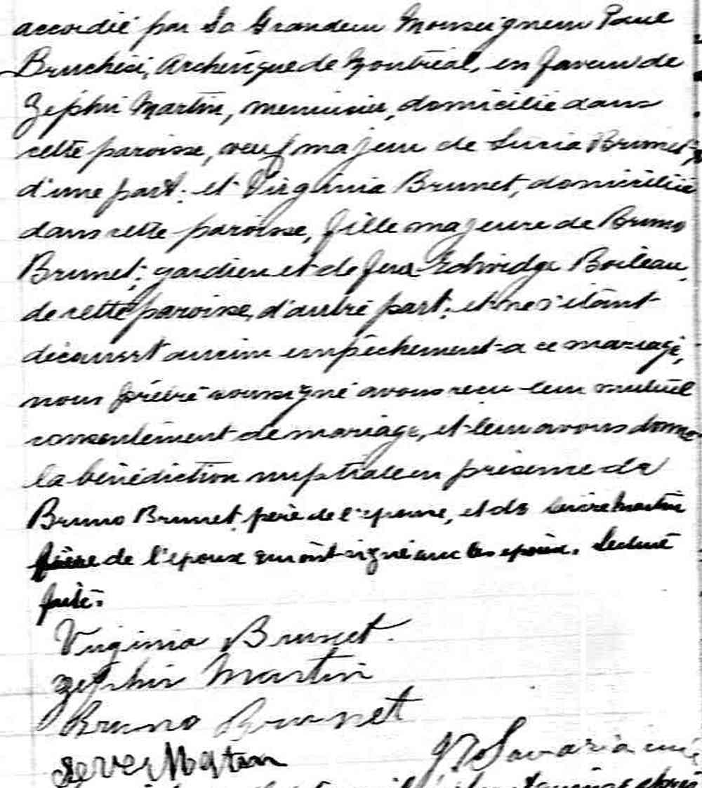 Mariage de Zéphir Martin et Virginie Brunet aux Saints Anges Gardiens de Lachine le 25 octobre 1915