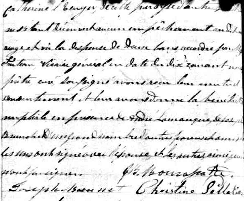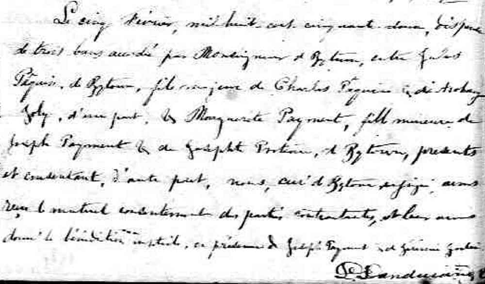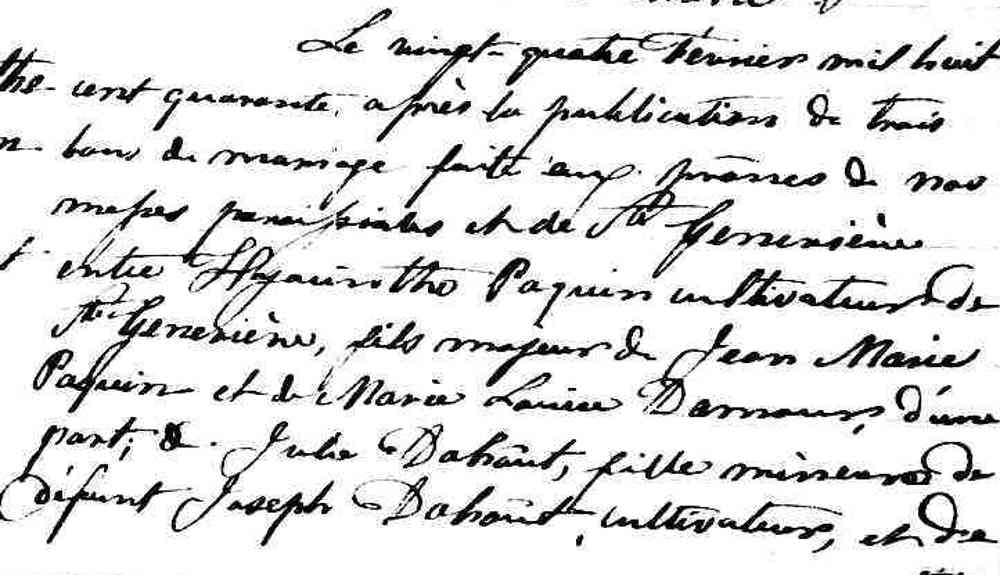 Mariage de Hyacinthe Paquin et Julie Daoust à la Pointe Claire le 24 février 1840