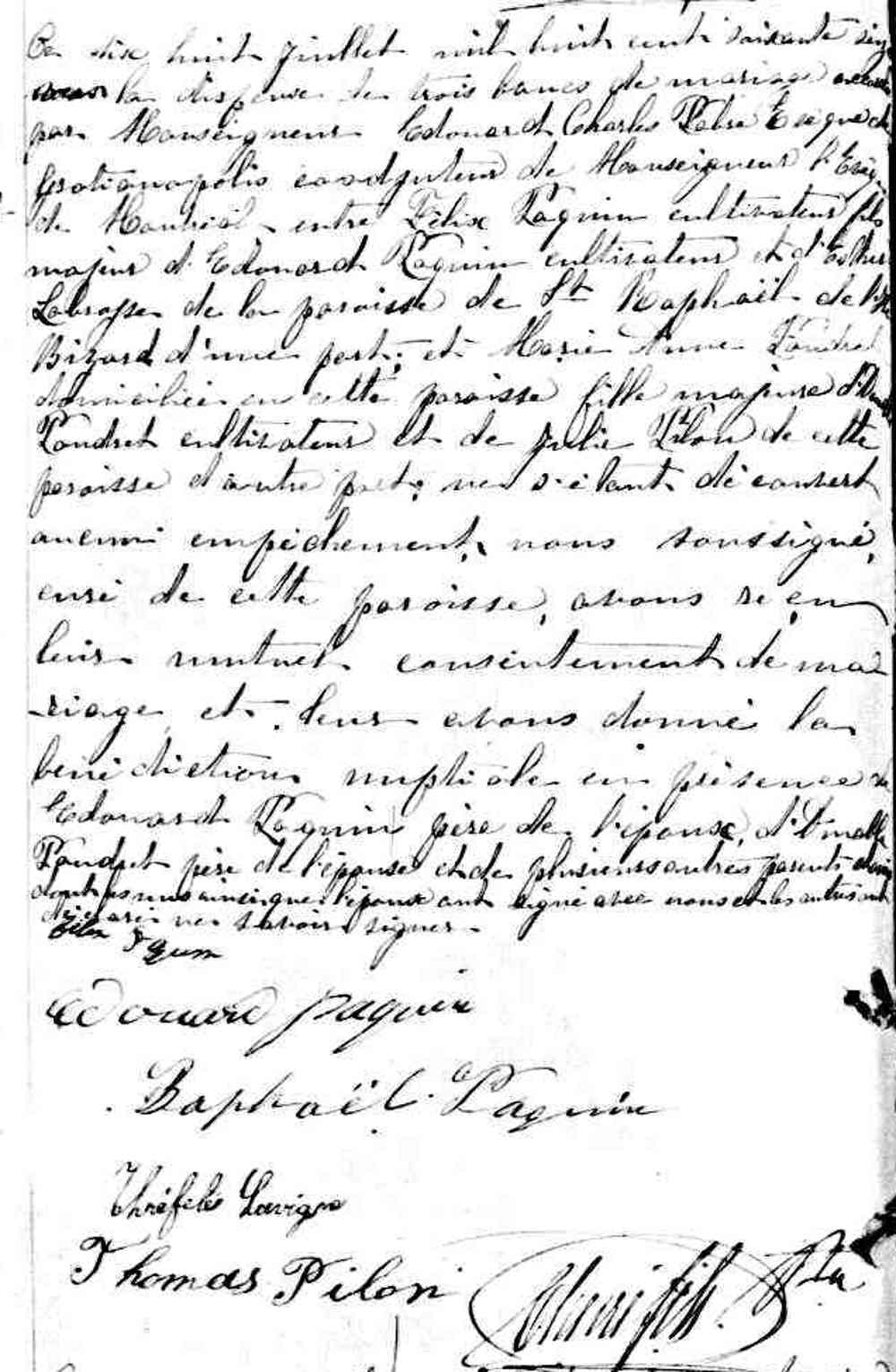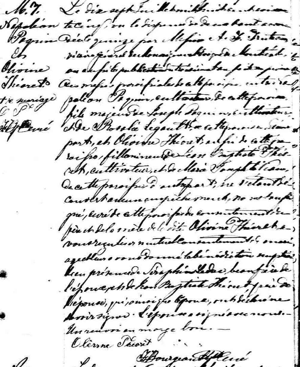 Mariage de Napoléon Paquin et Olivine Théoret le 17 juillet 1865