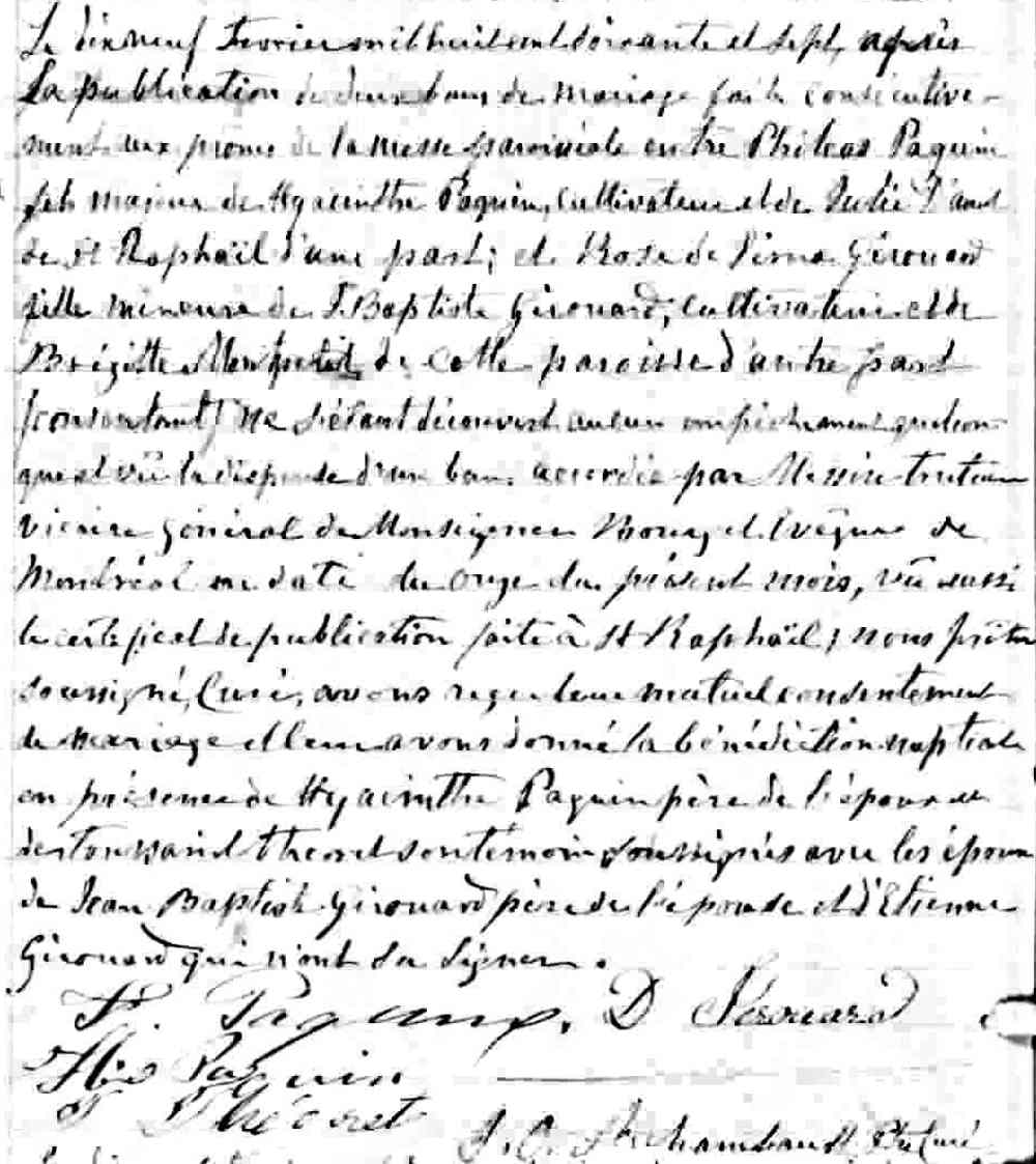 Mariage de Philéas Paquin et Rose de Lima Girouard à Saint Thimothée de Beauharnois le 19 février 1867