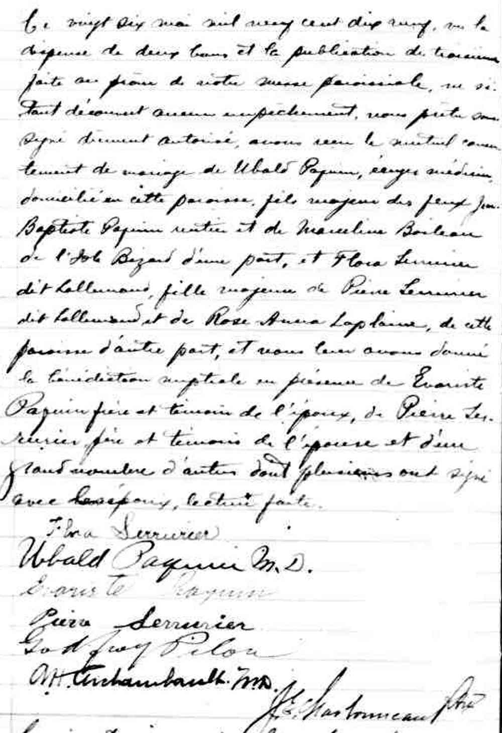 Mariage de Ubald Paquin et Flora Serrurier à Saint Pierre aux Liens de Montréal le 26 mai 1919