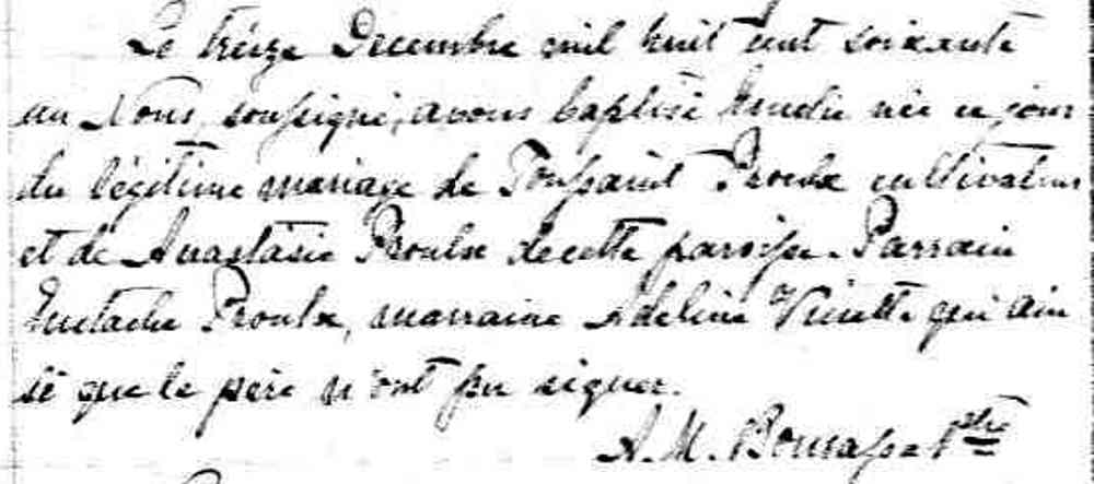 Baptême de Émélie Proulx à Montébello le 13 décembre 1861