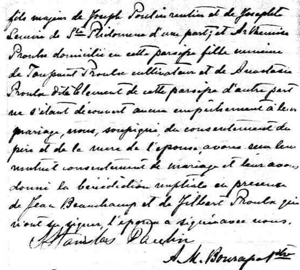 Mariage de Anastasie Proulx et Toussaint Proulx à Sainte Geneviève le 15 novembre 1841