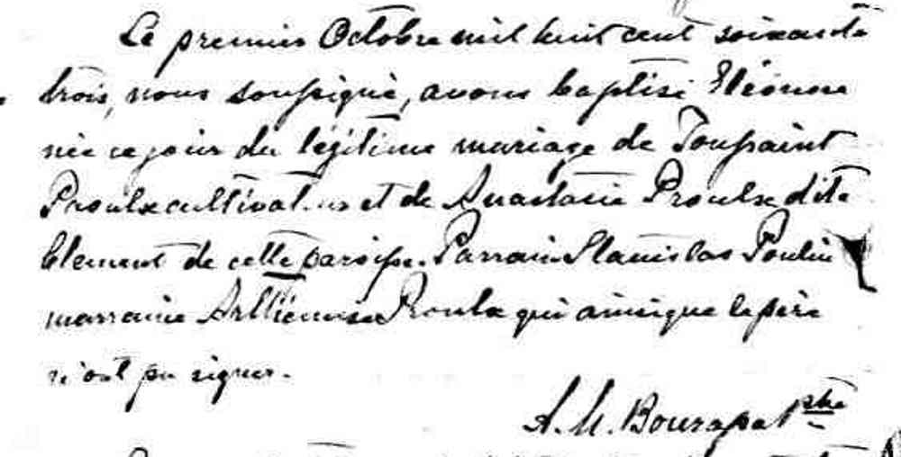 Baptême de Marie Éléonore Proulx à Montébello le 1er octobre 1863