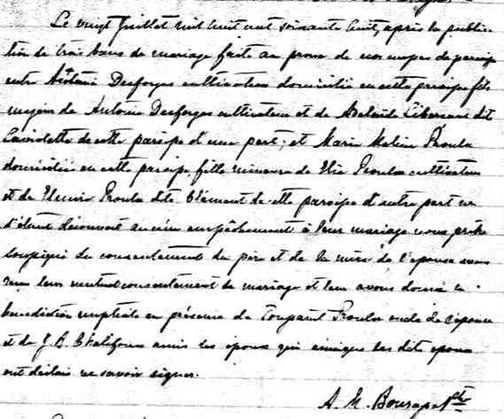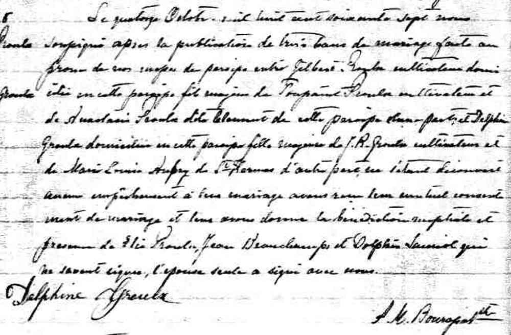 Mariage de Gilbert Proulx et Delphine Groulx à Montébello le 14 octobre 1867