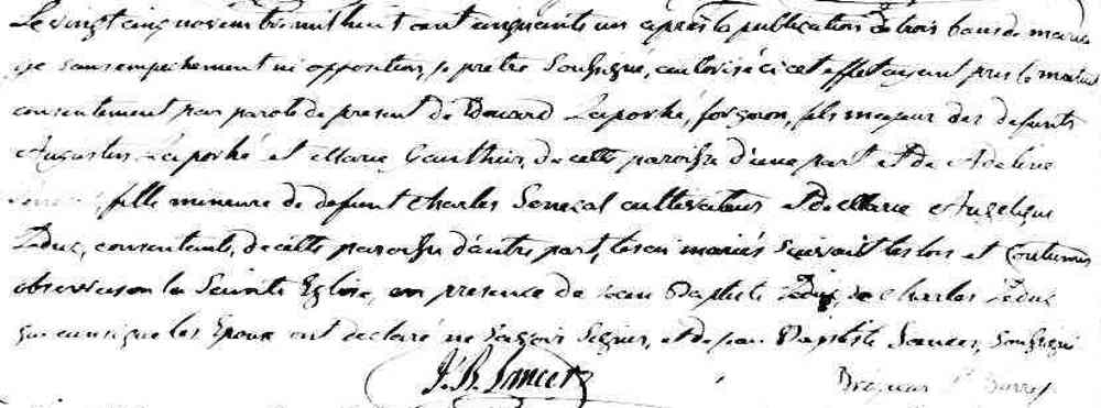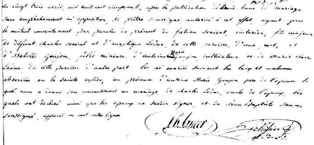 Mariage de Fabien Sénécal et Isabelle Goujon à Notre Dame de Montréal le 23 avril 1850