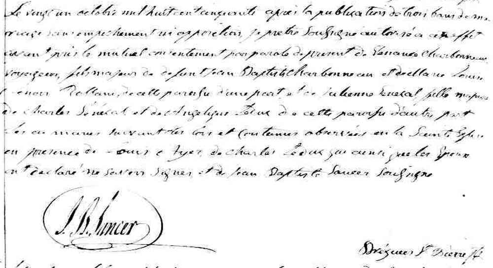 Mariage de Julienne Sénécal et Venance Charbonneau à Notre Dame de Montréal le 21 octobre 1850
